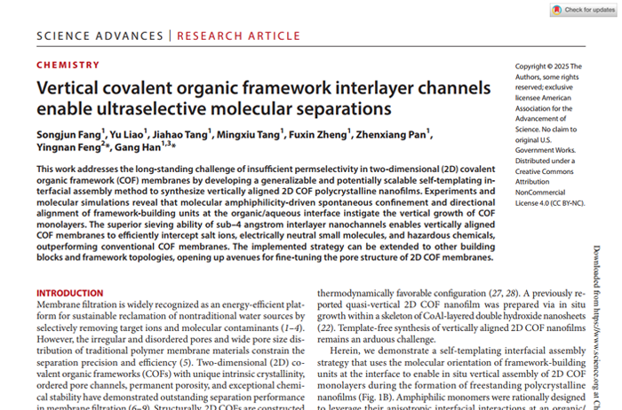 Vertical covalent organic framework interlayer channelsenable ultraselective molecular separations