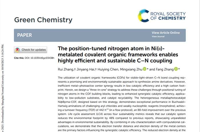The position-tuned nitrogen atom in Ni(II)-metalated covalent organic frameworks enables highly efficient and sustainable C–N coupling