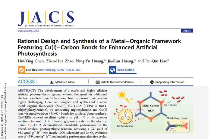 Rational Design and Synthesis of a Metal−Organic Framework Featuring Cu(I)−Carbon Bonds for Enhanced Artificial Photosynthesis
