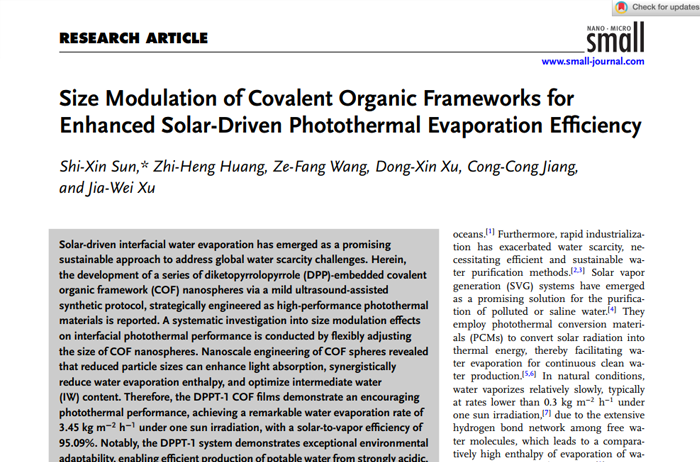 Size Modulation of Covalent Organic Frameworks for Enhanced Solar-Driven Photothermal Evaporation Efficiency