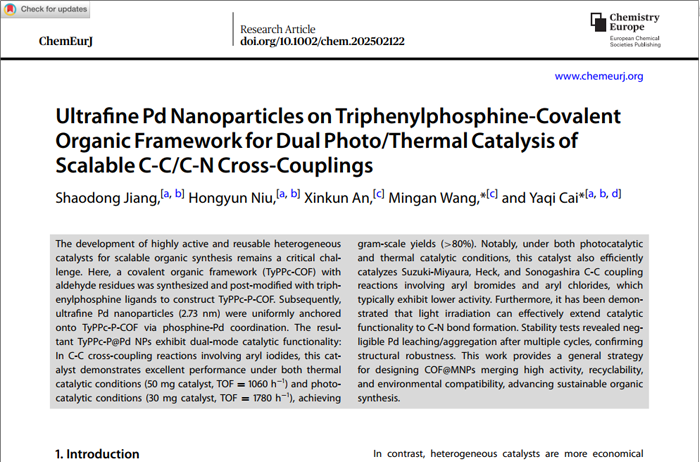 Ultrafine Pd Nanoparticles on Triphenylphosphine-Covalent Organic Framework for Dual Photo/Thermal Catalysis of Scalable C-C/C-N Cross-Couplings