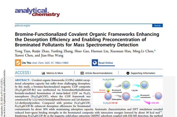 Bromine-Functionalized Covalent Organic Frameworks Enhancing the Desorption Efficiency and Enabling Preconcentration of Brominated Pollutants for Mass Spectrometry Detection