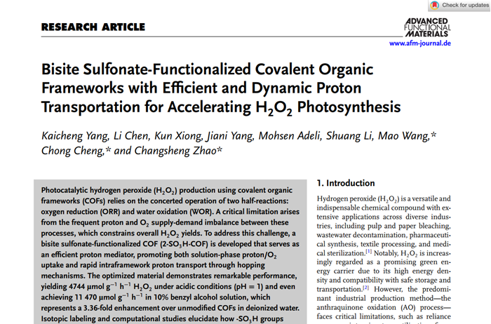 Bisite Sulfonate-Functionalized Covalent Organic Frameworks with Efficient and Dynamic Proton Transportation for Accelerating H2O2Photosynthesis