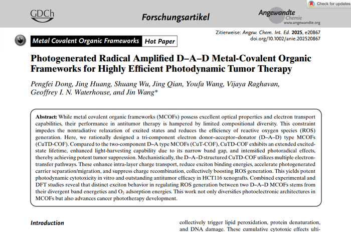 Photogenerated Radical Amplified D–A–D Metal-Covalent Organic Frameworks for Highly Efficient Photodynamic Tumor Therapy
