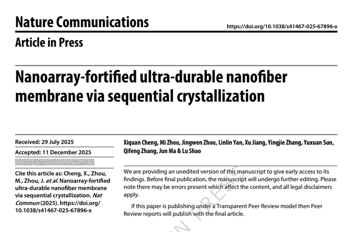 Nanoarray-fortified ultra-durable nanofiber membrane via sequential crystallization