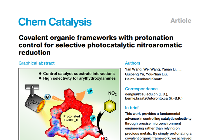 Covalent organic frameworks with protonation control for selective photocatalytic nitroaromatic reduction