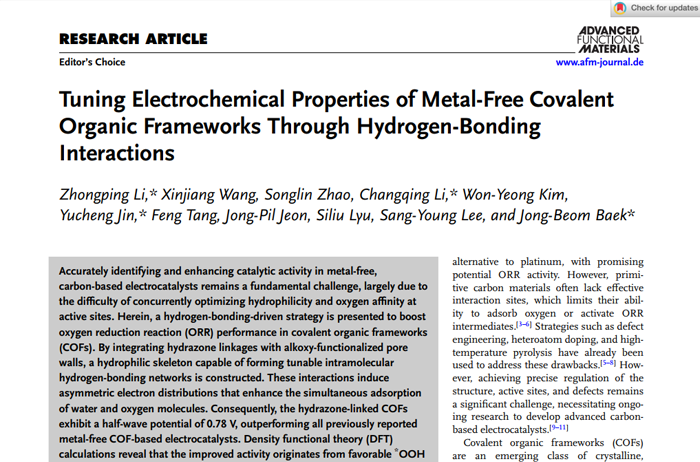Tuning Electrochemical Properties of Metal-Free Covalent Organic Frameworks Through Hydrogen-Bonding Interactions