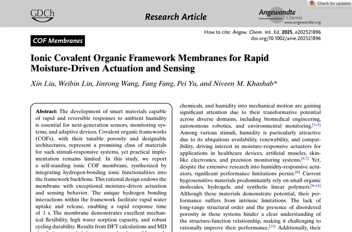 Ionic Covalent Organic Framework Membranes for Rapid Moisture-Driven Actuation and Sensing